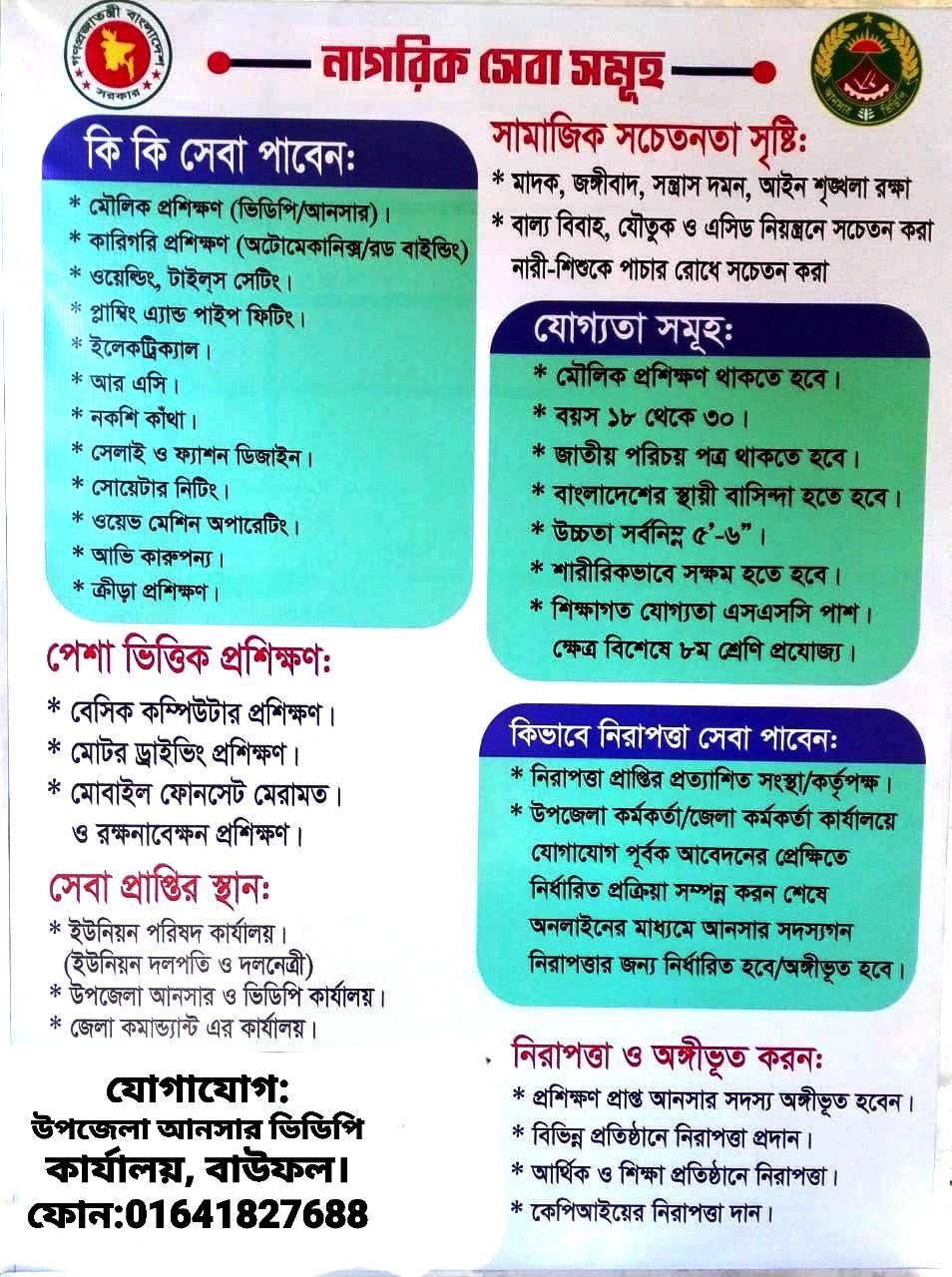আইন শৃঙ্খলা রক্ষায় পুলিশ বাহিনীকে সহযোগিতা করা। যেমনঃ- জাতীয় ও স্থানীয় নির্বাচন, দূর্গাজায় যোগ্যতা সম্পন্ন আত্মসামাজিক উন্নয়নে প্লাটুনভূক্ত সদস্য/সদস্যাদের যোগ্যতা অনুসারে বিভিন্ন পেশা ভিত্তিক প্রশিক্ষণ প্রদানের জন্য বিভাগীয় সেলাই, এয়ারকন্ডিশনার, ফ্রিজ, ইলেকট্রিশিয়ান, বেসিক কম্পিউটার, মটর ড্রাইভিং, মোবাইল ফোন সেট মেরামত, ও মৎস চাষসহ বিভিন্ন পেশা ভিত্তিক প্রশিক্ষণের জন্য যোগ্যতা সম্পন্ন প্রশিক্ষণার্থী বাছাই ও প্রশিক্ষণের জন্য বিভাগীয় বিভিন্ন নিশ্চিতকরণ। উপজেলার বিভিন্ন উন্নয়নমূলক কাজে সহযোগিতা করা।